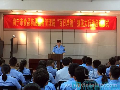 啟動儀式后,各縣(區)、開發區執法人員奔赴本轄區現場開展“百日凈流”執法大行動。市局調研員李本福、副調研員黃平帶隊到皇馬農貿市場、人人樂超市五象店、茶花園路紅酒莊進行檢查。檢查發現市場銷售的散裝酒、超市銷售的粽子無散裝食品標簽標示,已責令經營者整改。在茶花園路紅酒莊檢查,發現有無中文標簽標識的進口葡萄酒銷售,具體情況青秀區食藥監局正在一步調查。