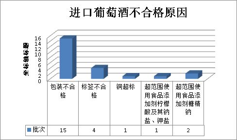 7月3日,國家質(zhì)檢總局發(fā)布《2017年5月未予準(zhǔn)入的食品化妝品信息》,其中23批次,15184.5千克進(jìn)口葡萄酒在入境檢測時發(fā)現(xiàn)不合格被銷毀或退貨。不合格產(chǎn)品主要來自法國、西班牙、葡萄牙、澳大利亞、南非、智利、意大利、亞美尼亞等8個國家或地區(qū)。不合格原因主要為包裝不合格,標(biāo)簽不合格,銅超標(biāo),超范圍使用食品添加劑檸檬酸及其鈉鹽、鉀鹽,超范圍使用食品添加劑糖精鈉。