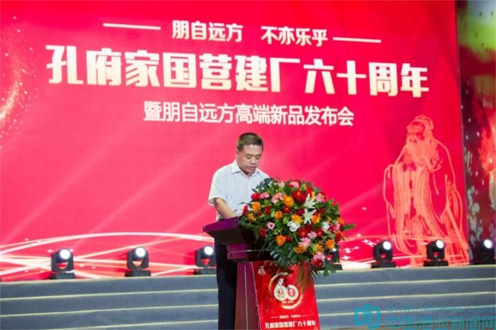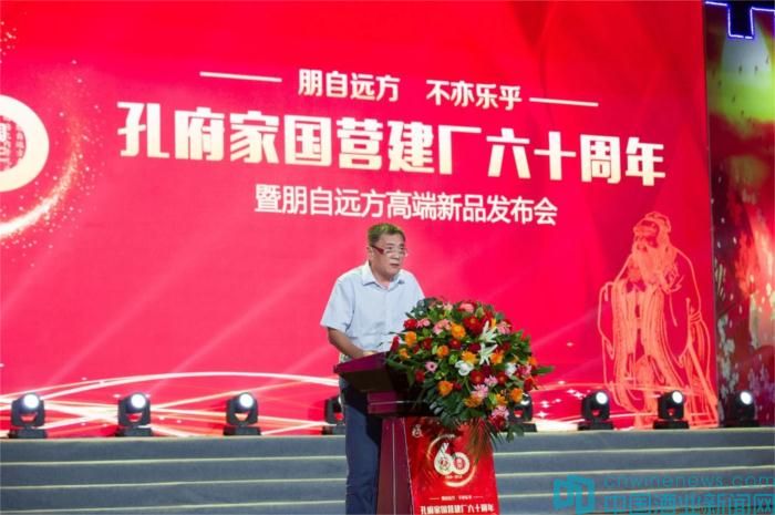 下午,山東省食品工業協會會長郭友武、山東省白酒協會會長姜祖模、山東省糖酒副食品商業協會會長薛劍銳、中國著名白酒專家鐘杰;濟寧學院副院長朱松濤、曲阜師范大學宣傳部部長楊正運;濟寧廣播電視臺臺長張作昌;濟寧日報社副總編史忠強;濟寧市輕紡辦主任李廣吉;曲阜市政協主席孔令玉、市委常委副市長劉曉林、曲阜市經信局局長韋良杰以及曲阜市政府有關部門、各有關單位主要負責人;各鎮人民政府、街道辦事處分管負責人;部分重點企業主要負責人;衡水老白干酒業股份有限公司董事長劉彥龍、總經理王占剛,豐聯酒業控股集團有限公司董事長湯捷,衡水老白干酒業股份有限公司常務副總經理張煜行、財務總監李玉雷,河北板城酒業有限公司總經理張春生,安徽文王酒業股份有限公司總經理方焰、孔府家酒業有限公司董事長譚小林、總經理劉濤、集團其他兄弟企業公司領導以及孔府家酒業有限公司邱振新等老領導、老員工代表及媒體記者等共計1200余人參加了“朋自遠方,不亦樂乎——孔府家國營建廠60周年暨朋自遠方高端新品發布會”。