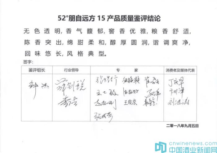 自2015年上市以來,“朋自遠方”歷經近三年的市場運營檢驗,其品質和文化得到消費者的高度認可。“朋自遠方15”系列是對“朋自遠方”的品質再升級。在9月5日上午,孔府家組織了一場“朋自遠方15”產品質量鑒評會, 包括中國著名白酒專家、源坤鑒酒創始人鐘杰在內的多位白酒專家共同對其進行了質量鑒評,認為該酒“無色透明,香氣馥郁,陳香優雅,綿甜柔和,醇厚圓潤,酒體爽凈,回味悠長,風格典型”,是“正宗魯酒”卓越品質的再升級。
