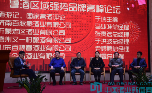 隨后,在酒游記主編于瑞主持的“魯酒區域強勢品牌高峰論壇”環節,濟南百脈泉酒業有限公司馬業準總經理、沂蒙老區酒業有限公司張貴選總經理、德州又一村釀酒有限公司于洪波總經理、山東百糧春酒業有限公司尹婷婷總經理、山東今朝酒業有限公司劉鑫總經理并圍繞魯酒的高端定位、高端發展等話題展開探討,紛紛發表了各自的看法與見解。