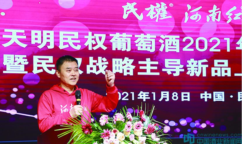 1月8日,天明民權葡萄酒2021年戰略發布暨民權戰略主導新品上市發布會舉行。民權縣委副書記、縣長張團結,中國酒業協會葡萄酒分會秘書長火興三,河南省酒業協會會長熊玉亮,天明集團董事長、天明民權葡萄酒名譽董事長姜明,天明民權葡萄酒董事長馬丹等領導出席發布會。