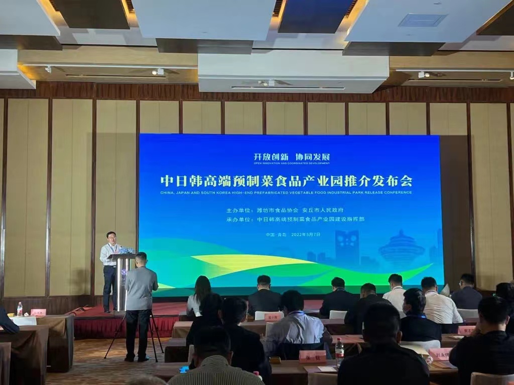 美好五月,繁花似錦。為切實做好預制菜品牌建設,全力推動中日韓高端預制菜食品產業園建設步伐。5月7日,由濰坊市食品協會、安丘市人民政府主辦,中日韓高端預制菜食品產業園建設指揮部承辦,以“開放創新,協同發展”為主旨的中日韓高端預制菜食品產業園推介發布會在青島隆重舉辦。