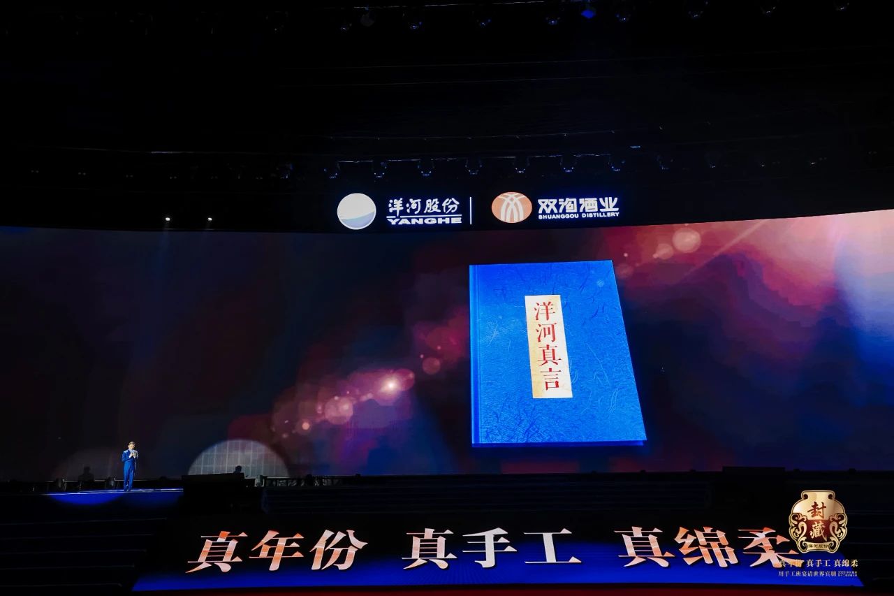 大典的節(jié)目安排獨(dú)具匠心,通過一系列沉浸式舞臺電影、喜劇表演、AI對話等創(chuàng)意文化節(jié)目,全方位展示了洋河股份對白酒文化的理解、傳承、創(chuàng)新以及對高品質(zhì)的執(zhí)著追求。節(jié)目單被巧妙設(shè)計成了一本書的意象——《洋河“真”言》,由文化學(xué)者、著名主持人趙普擔(dān)任領(lǐng)讀人,以“真心話”為引,串聯(lián)起整個大典的十個節(jié)目章節(jié)。